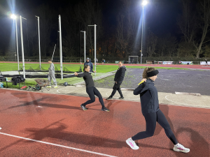 Woensdagavond kwamen Wicher Nijkamp en Frank van Leeuwen, trainers van ATR (Atletiek Trainingscentrum Rotterdam), een gasttraining hordelopen en speerwerpen geven. Dit als bedankje voor het gebruik van de baan toen de atletiekbaan in Rotterdam werd gerenoveerd. Een mooie gelegenheid voor de atleten om een extra training te doen en voor de trainers én atleten om nieuwe oefeningen en oefenvormen te leren kennen.